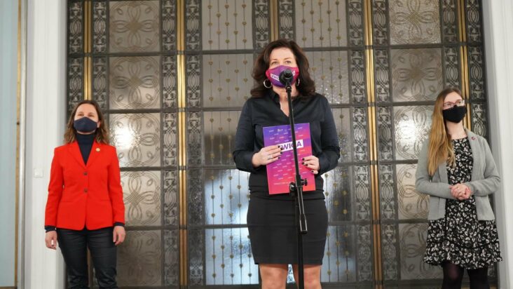Posłanka Paulina Matysiak na konferencji prasowej 3 marca 2021 r.
